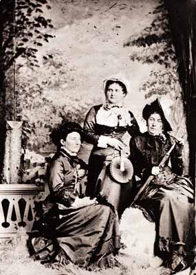 GN5329; n.d.; The 3 daughters of Mitchell and Permelia Wilkins, who came to Oregon across the plains in 1847. The family lived at the base of the Coburg Hills near Centennial Butte. Left to right are Angeline (Mrs. Sam Holt), Lida (Mrs. Albert Bently) and Etta (Mrs. Joseph Kays).