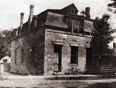 GN4789; n.d.; Oregon State Journal office, on the north side of 9th Avenue between Oak and Pearl Streets. Exterior. View of 2-story stone building with Mansard-style roof. Bicycle is parked on board sidewalk in foreground. The Journal was Eugene's "pioneer" newspaper, continuing for 40 years. Editor was Harrison Kincaid.