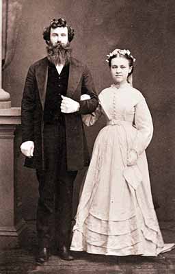 GN5359; 1852; John Cogswell and Mary Frances Gay on their wedding day, October 28, 1852. Theirs was the 1st marriage license recorded in the Lane County Clerk's office. They lived on Cogswell's donation land claim at the confluence of the Mohawk and McKenzie Rivers, north of Springfield.